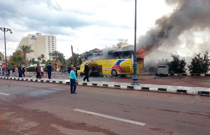 В минувшее воскресенье в автобусе с южнокорейскими туристами взорвался террорист-смертник. Террорист смог войти в автобус, после чего привел в действие взрывное устройство. Погибли четыре человека, в том числе водитель-египтянин, более 30 получили ранения. До этого на протяжении пяти лет туристы в Египте не погибали в результате терактов.
