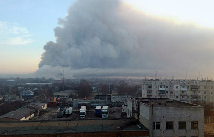 "В связи с продолжающейся детонацией боеприпасов, тушение пожара в данное время осуществить невозможно, и оно не происходит", - сказал главный военный прокурор Украины Анатолий Матиос.