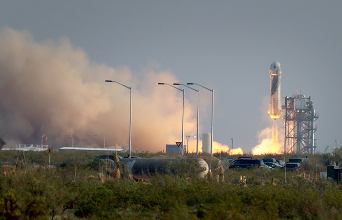 New Shepard взлетел с частного космодрома Blue Origin около города Ван-Хорн в Техасе в 16:12 (по московскому времени). 12-минутная задержка от запланированного на 16:00 старта не стала критичной: компания не зависела от погодных и других условий.