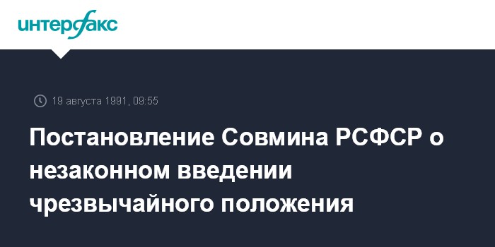 Москва. 19 августа. ИНТЕРФАКС. Совет министров РСФСР призвал исполнительные органы власти Федерации неукоснительно руководствоваться законодательством России. В постановлении от 19 августа правительство РСФСР обращается к правительствам всех союзных республик с призывом объединить усилия по защите и поддержанию конституционного порядка на всей территории СССР.