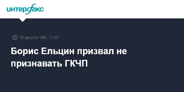 Москва. 19 августа. ИНТЕРФАКС. Президент РСФСР Борис Ельцин на митинге в Москве не признавать ГКЧП и не выполнять его решений. Выступая с балкона Дома Советов РСФСР, Ельцин предложил использовать для борьбы все конституционные формы - демонстрации, митинги, забастовки. Ельцин призвал москвичей взять под общественную охрану Дом Советов РСФСР и законную власть республики. Президент РСФСР сообщил, что готовит Указ, согласно которому члены Государственного комитета по чрезвычайному положению будут объявлены вне закона.