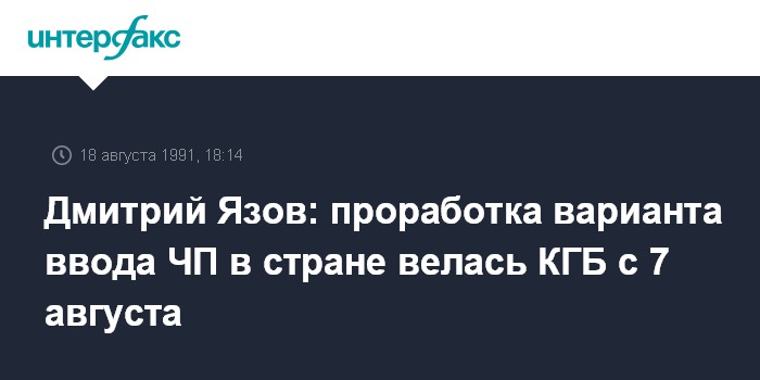 "Проработка варианта ввода чрезвычайного положения в стране велась Комитетом государственной безопасности с 7 августа. От Министерства обороны принимал участие командующий Воздушно-десантными войсками генерал-лейтенант Грачев… С 15 или 16 августа к этой работе подключились Грушко – первый заместитель председателя КГБ и заместитель министра обороны генерал-полковник Ачалов. О создании Комитета по чрезвычайному положению тогда и речи не было. Об этом разговор зашел только вечером 18 августа в кабинете Павлова после возвращения наших товарищей из Фороса. Тогда же я впервые увидел список Комитета в составе 10 человек".
