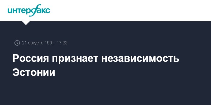 Таллинн. 21 августа. ИНТЕРФАКС. Представитель министерства иностранных дел России при МИД Эстонии Олег Попович официально известил руководство эстонского внешнеполитического ведомства, что Россия признает независимость Эстонии.