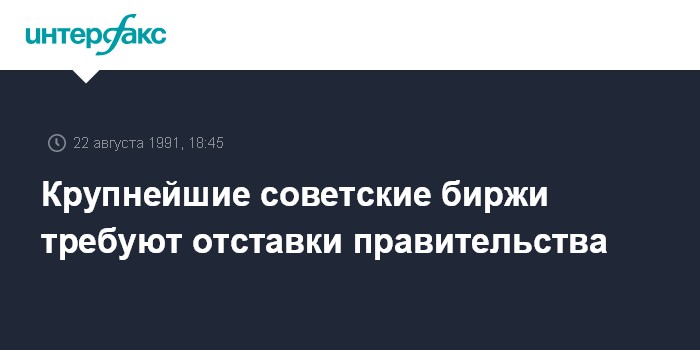 Представители советских бирж потребовали также скорейшего заключения Союзного договора и экономического соглашения между республиками, отставки Кабинета Министров, решительной деполитизации экономики, в результате которой "была бы сорвана маска с псевдорыночных структур, вчера называвшимися министерствами и ведомствами".