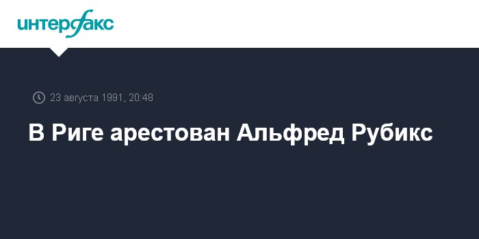 Рига. 23 августа. ИНТЕРФАКС. Как сообщил корреспондент "Балтфакса" из Латвии, 23 августа в Риге арестован бывший первый секретарь ЦК Компартии Латвии Альфред Рубикс. А.Рубикс являлся народным депутатом СССР и Латвии, однако латвийское руководство пришло к выводу, что союзная депутатская неприкосновенность не распространяется на территории Латвии, а латвийский парламент лишил лидера коммунистов депутатской неприкосновенности.