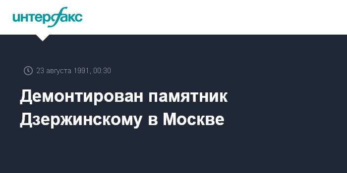 Москва. 23 августа. ИНТЕРФАКС. По решению городских властей Москвы в 23.30 минут в четверг был демонтирован памятник Дзержинскому - одному из соратников В.И. Ленина, возглавлявшего ВЧК - КГБ в первые годы после Октябрьской революции 1917 года.