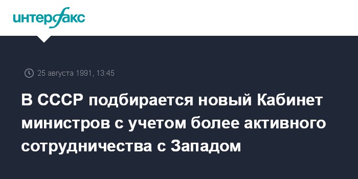 Как отметили также в МИД СССР, новый кабинет министров СССР может быть объявлен на этой неделе. Пока же вопросам сотрудничества с "большой семеркой" по согласованию с союзным руководством особое внимание уделяет министерство экономики РСФСР во главе с Евгением Сабуровым, действующее в данном случае от имени всей страны. В будущем предполагается, что для контактов с "семеркой" союзная делегация будет включать и представителей республик, в том числе и России.