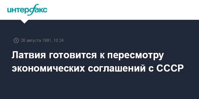 Рига. 26 августа. ИНТЕРФАКС. Латвия, провозгласившая 21 августа свою независимость, заявила, что пересмотрит экономические отношения с СССР. Об этом объявлено на правительственном совещании под руководством вице-премьера Латвии Арниса Калныньша.