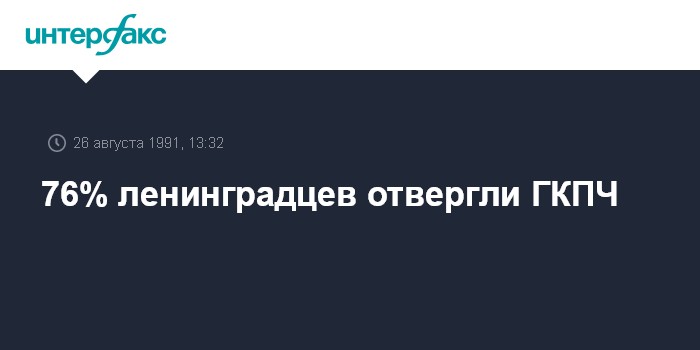 Ленинград. 26 августа. ИНТЕРФАКС. Категорически отвергли деятельность ГКЧП СССР 76% ленинградцев, показал опрос общественного мнения. Позитивно оценили "чрезвычайку" лишь 10% населения города. У 14% - отсутствует какая-бы то ни было позиция по этому поводу.