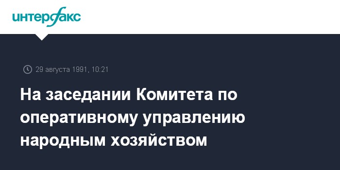 Москва. 29 августа. ИНТЕРФАКС. В четверг на первом организационном заседании Комитета по оперативному управлению народным хозяйством СССР под председательством Ивана Силаева обсуждались меры по стабилизации экономики, в том числе продовольственного обеспечения населения.