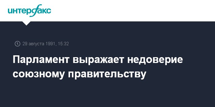 Москва. 29 августа. ИНТЕРФАКС. Парламент СССР выразил недоверие правительству. "За" проголосовало 402 депутатов, "против" - 16.