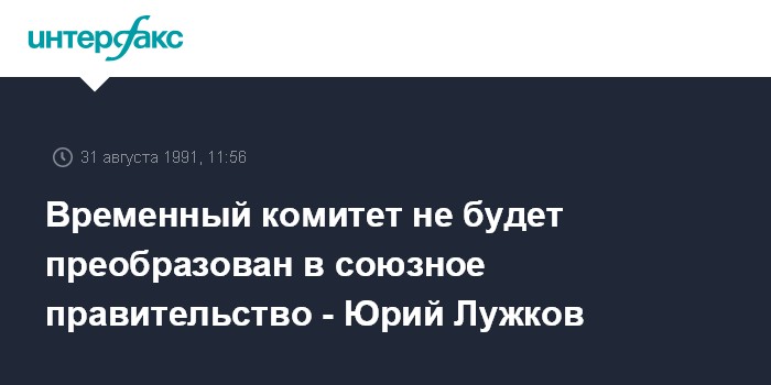 Москва. 31 августа. ИНТЕРФАКС. Комитет по оперативному управлению народным хозяйством страны не будет реорганизовываться в союзное правительство. Об этом сообщил в эксклюзивном интервью корреспонденту "ИФ" Евгению Терехову член Комитета, вице-мэр Москвы Юрий Лужков. Он добавил, что это временный орган. "Все мы, члены Комитета, утвержденного Верховным Советом СССР, договорились, что не будем претендовать на участие в будущем правительстве", сказал вице-мэр.