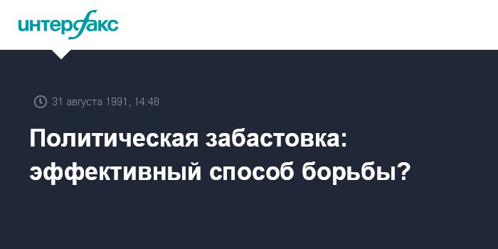 Москва. 31 августа. ИНТЕРФАКС.В ходе того же опроса его участники высказали свое отношение к политической забастовке как форме борьбы за гражданские права. 47% респондентов относятся к политическим забастовкам положительно. Причем, наиболее популярны они в среднеазитских республиках.