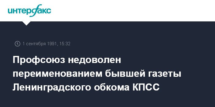 Ленинград. 1 сентября. ИНТЕРФАКС. Работники неформального профсоюза Ленинграда "Информ-свобода" выразили в субботу протест против нового названия бывшего печатного органа ленинградской организации КПСС газеты "Ленинградская правда". В своем заявлении для средств массовой информации они назвали действия мэрии и главного редактора газеты, названной теперь "Санкт-Петербургские ведомости", "неприкрытым мошенничеством". "Информ-свобода" указал, что им был учрежден и зарегистрирован в ноябре 1990 года свой печатный орган с аналогичным названием.
