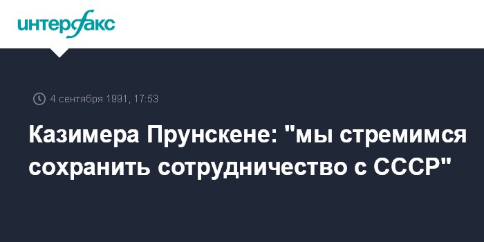 Говоря о возможном сотрудничестве между СССР и Литвой, Прунскене подчеркнула, что Вильнюс "не стремится разорвать связи". По ее словам, "все умеренные демократические силы Литвы стремятся к тому, чтобы советско-литовское сотрудничество было сохранено".