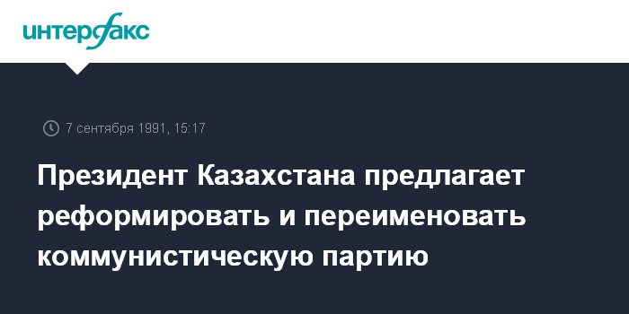 Алма-Ата. 7 сентября. ИНТЕРФАКС. Президент Казахстана Нурсултан Назарбаев предложил создать вместо республиканской коммунистической партии новую партию парламентского типа и изменить ее название.
