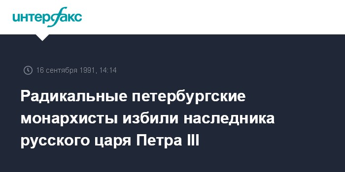 Санкт-Петербург. 16 сентября. ИНТЕРФАКС. На прошлой неделе в своей квартире был избит прямой наследник русского царя Петра III художник Борис Энгельгардт.