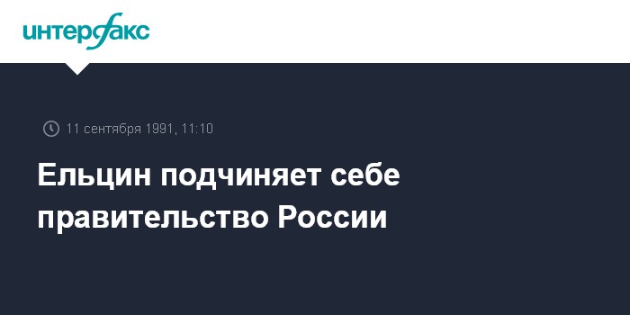 Москва. 11 сентября. ИНТЕРФАКС. В рамках создания новой системы исполнительной власти в России, Борис Ельцин издал указ, согласно которому республиканское правительство будет подчиняться непосредственно президенту и действовать под его руководством.