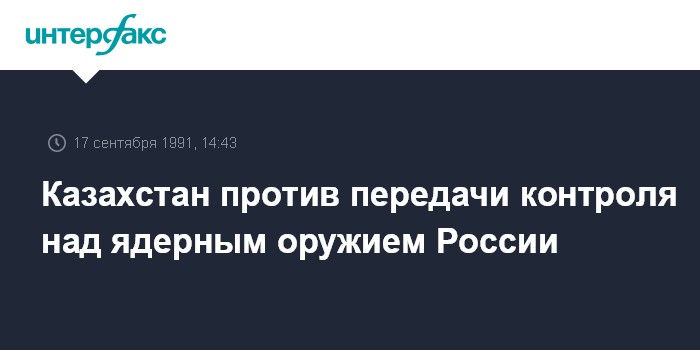Алма-Ата. 17 сентября. ИНТЕРФАКС. Президент Казахстана Нурсултан Назарбаев на совместной с госсекретарем США Джеймсом Бейкером пресс-конференции, заявил, что контроль над ядерным оружием должны совместно осуществлять все республики СССР.