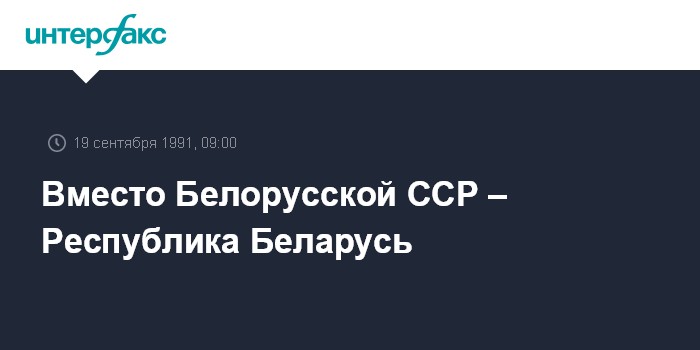 Минск. 19 сентября. ИНТЕРФАКС. Сессия белорусского парламента приняла в четверг решение о переименовании Белорусской ССР в Республику Беларусь. В тот же день, сообщает корреспондент "Интерфакса", рассматривался вопрос о национальной символике республики.