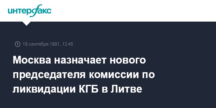 Вильнюс. 19 сентября. ИНТЕРФАКС. В Вильнюс 17 сентября прибыл новый председатель комиссии по ликвидации КГБ СССР в Литве первый заместитель начальника управления по борьбе с организованной преступностью КГБ СССР С.Орлов. Бывший глава этой комиссии генерал И.Федосеев отозван в Москву.