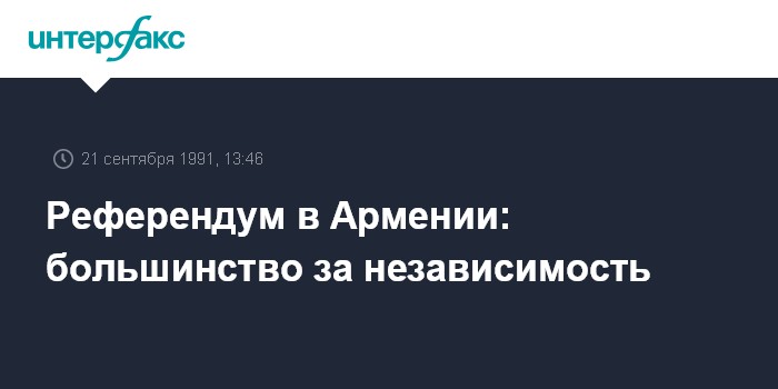 Ереван. 21 сентября. ИНТЕРФАКС. По предварительным данным, в Армении на 18:00 московского времени в референдуме по вопросу о независимости приняло участие 76 процентов от общего числа имеющих право голоса. Как сообщает корреспондент "Интерфакса", неожиданностей не было, и подавляющее большинство из них отдало свой голос за "независимую, суверенную, демократическую Армению".