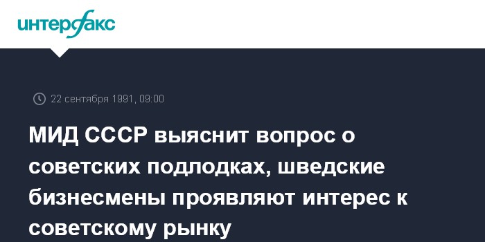Москва. 22 сентября. ИНТЕРФАКС. МИД СССР предстоит выяснить, насколько соответствуют действительности заявления Министерства обороны страны, сделанные в период до путча, о том, что после 1981 года советские подводные лодки не направлялись к берегам Швеции. Об этом заявил ответственный сотрудник Второго европейского управления МИД СССР.