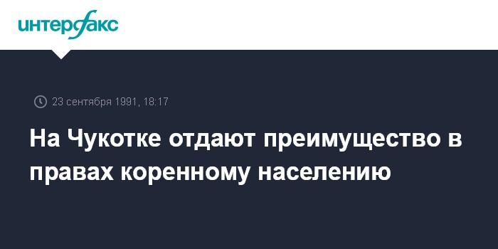 Анадырь. 23 сентября. ИНТЕРФАКС. Группа представителей Ассоциации малочисленных народов Чукотки и Колымы опубликовала в Анадыре (административный центр Чукотского автономного округа) предложения по закону о национальной автономии в РСФСР. В частности, сообщает корреспондент "Интерфакса", они предложили ввести на Чукотке статус постоянного жителя, который даст политические и экономические преимущества в основном коренным жителям округа.