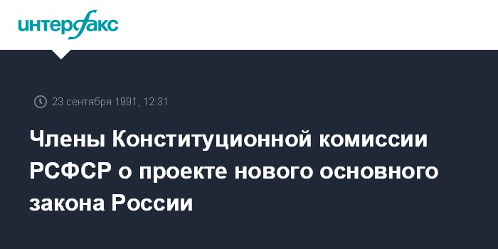 Москва. 23 сентября. ИНТЕРФАКС. В Москве прошла пресс-конференция членов и экспертов Конституционной комиссии съезда народных депутатов РСФСР, посвященная проекту Конституции РФ – России.