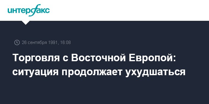 Москва. 26 сентября. ИНТЕРФАКС. Товарооборот СССР со странами Восточной Европы, сокращающийся уже несколько лет, в 1991 году, по оценке экспертов, уменьшится еще на 58%. Это в два раза больше, чем прогнозируемое падение внешней торговли СССР в целом.