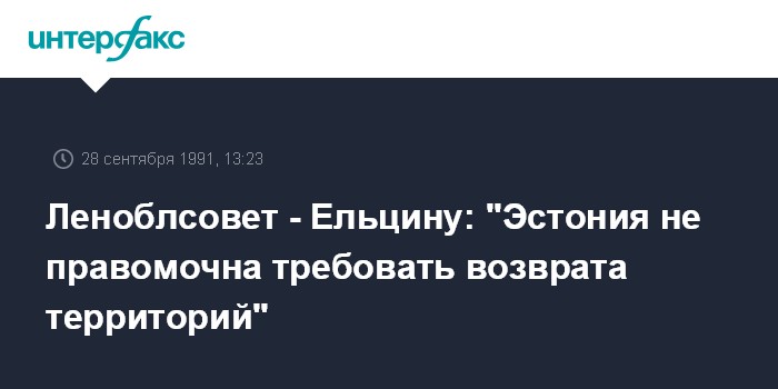 Санкт-Петербург. 28 сентября. ИНТЕРФАКС. 27 сентября сессия Ленинградского облсовета приняла обращение к президенту России Борису Ельцину с протестом "против попыток эстонской стороны поставить вопрос об отторжении в ее пользу части территории Ленинградской области".