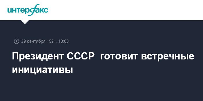 Москва. 29 сентября. ИНТЕРФАКС. Президент СССР готовит встречные инициативы, которые станут ответом на недавние предложения президента США по радикальному сокращению ядерного оружия. Об этом заявил ответственный сотрудник пресс-службы М.Горбачева. В беседе с корреспондентом "ДП" он предположил, что, скорее всего уже к середине недели советские инициативы будут подготовлены, и президент М.Горбачев предаст их гласности.