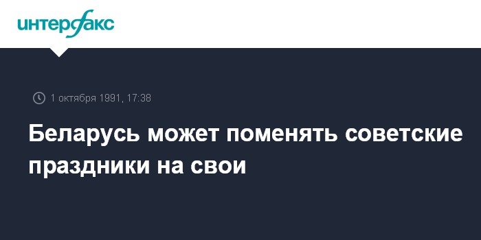 Минск. 1 октября. ИНТЕРФАКС. В Верховном Совете Беларуси распространен проект постановления, подготовленный оппозицией Белорусского народного фронта, "0 государственных праздниках Республики Беларусь".