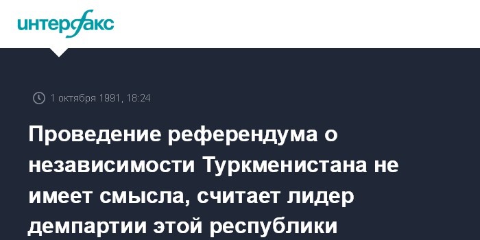 Ашхабад. 1 октября. ИНТЕРФАКС. Проведение в конце октября референдума о независимости Туркменистана не имеет смысла, это будет просто трата средств и времени.