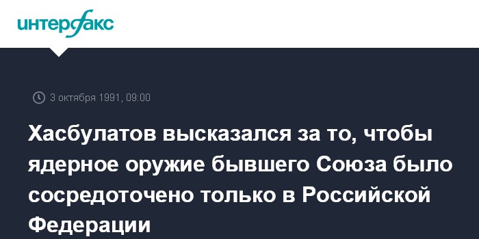 Говоря о будущем Союзе, Хасбулатов подчеркнул, что он, похоже, будет конфедерацией. Однако ряд вопросов должен быть закреплен за Президентом страны. Хасбулатов высказался за то, чтобы ядерное оружие было сосредоточено только на территории Российской Федерации, добавив, что Украине, Казахстану и другим республикам было предложено либо перебазировать в Россию свой ядерный потенциал, либо уничтожить его.