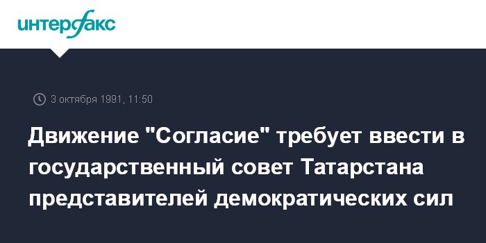 Оно настаивает на кооптации в государственный совет представителей Демократической партии России, социал-демократической партии Татарии, "Иттифака". В противном случае движение намерено отозвать из государственного совета своего лидера Валерия Беляева.