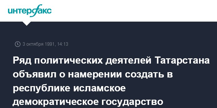 Казань. 3 октября. ИНТЕРФАКС. Группа общественных и политических деятелей Татарстана заявила о своем стремлении создать на территории республики Исламское демократическое государство Булгар-татар. Об этом "Интерфаксу" сообщил председатель Исламской демократической партии Татарстана Фаниль Ахмадиев.