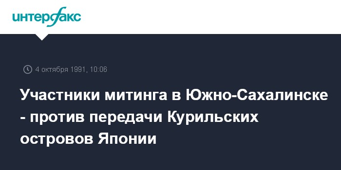 Южно-Сахалинск. 4 октября. ИНТЕРФАКС. В пятницу, 4 октября, в Южно-Сахалинске состоялся митинг представителей общественности Сахалина и Курильских островов.
