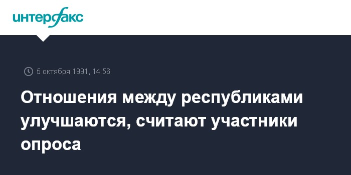 Москва. 5 октября. ИНТЕРФАКС. Улучшения в отношениях между Россией и республиками ждет большинство (44%) участников того же опроса, 22% - ухудшения.