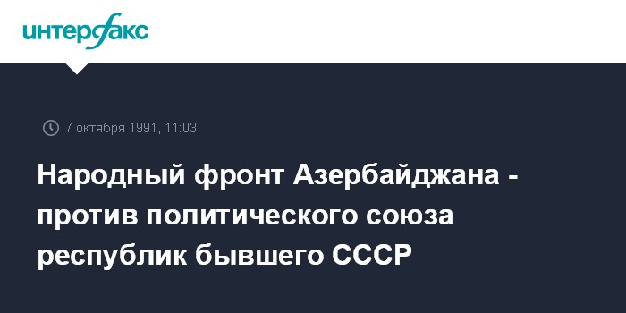 Баку. 7 октября. ИНТЕРФАКС. Народный фронт Азербайджана против политического союза между республиками бывшего СССР. "Он выступает за полностью независимое Азербайджанское государство", - заявил корреспонденту "Интерфакса" заместитель председателя оппозиционного Народного фронта Азербайджана Иса Гамбаров.