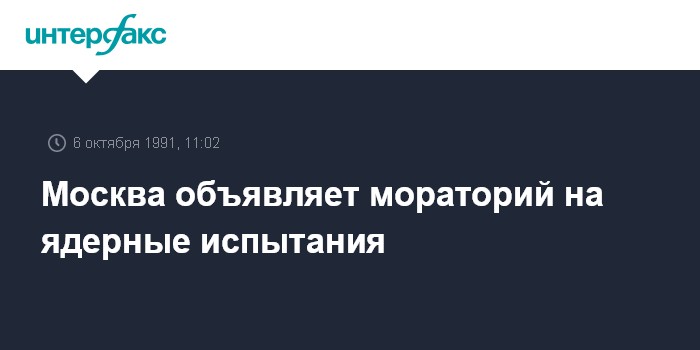Москва. 6 октября. ИНТЕРФАКС. Советский Союз объявил об установлении на год, начиная с 5 октября, одностороннего моратория на все ядерные испытания.