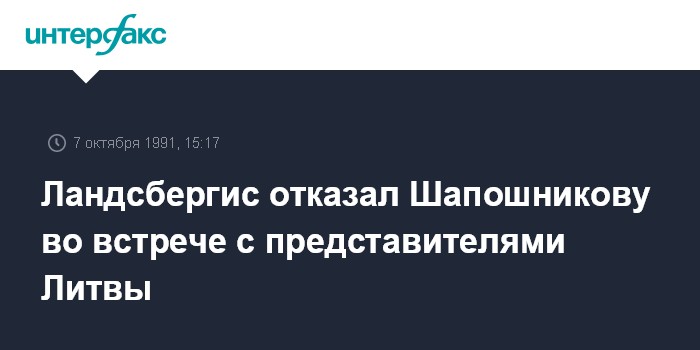Вильнюс. 7 октября. ИНТЕРФАКС. Глава литовского парламента Витаутас Ландсбергис отклонил предложение министра обороны СССР Евгения Шапошникова о встрече делегаций министерства обороны СССР и делегации уполномоченных представителей Литвы.