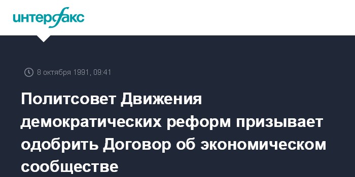 Москва. 8 октября. ИНТЕФАКС. Политсовет Движения демократических реформ призвал во вторник все политические партии и движения страны поддержать заключение Договора об экономическом сообществе.