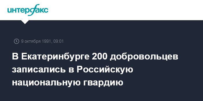 Москва. 9 октября. ИНТЕРФАКС. Как сообщил представитель Союза "Щит" по Свердловской области Андрей Снегирев, за две недели с момента начала записи в Российскую национальную гвардию 200 добровольцев выразили желание вступить в нее.
