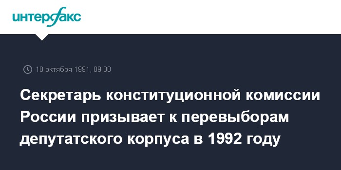 В интервью "Интерфаксу" О.Румянцев подчеркнул, что если съезд своей волей не внесет рассмотрение проекта Конституции в повестку дня, то неизбежен "обвал Российской Федерации". Он призвал к досрочным перевыборам депутатского корпуса в 1992 году.