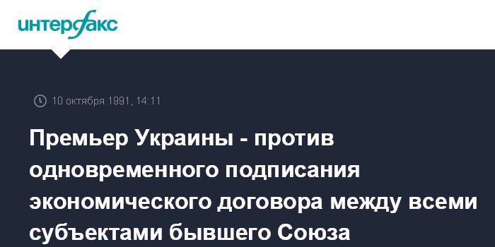 Киев. 10 октября. ИНТЕРФАКС. Премьер-министр Украины Витольд Фокин заявил в четверг на пресс-конференции в Киеве, что он - не сторонник одновременного подписания экономического договора между всеми субъектами бывшего Союза и будет добиваться заключения договоров, прежде всего, между Украиной, Россией, Казахстаном и Белоруссией.