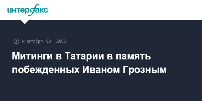 Казань. 14 октября. ИНТЕРФАКС. В Казани, Нижнекамске и Чистополе (Татария), состоялись санкционированные митинги, посвященные памяти павших в борьбе с войсками московского царя Ивана Грозного в 16-м веке.