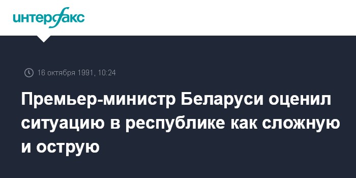 Минск. 16 октября. ИНТЕРФАКС. "Ситуация в Беларуси - сложная и острая: распад хозяйственных связей, срывы договорных поставок нарушили работу предприятий.