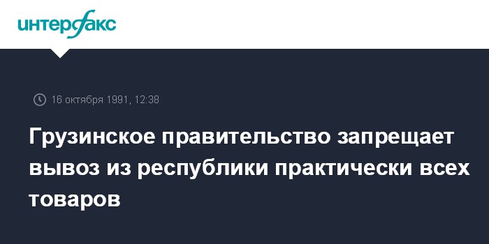 Тбилиси. 16 октября. ИНТЕРФАКС. Кабинет министров Грузии внес изменения в ранее утвержденное постановление "О временных мероприятиях по регулированию вывоза за пределы Республики Грузия некоторых видов сырья, продовольствия и промышленных товаров".