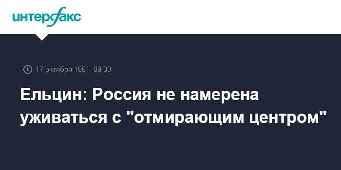 Политика руководства РСФСР теперь будет базироваться на том, что Россия более не намерена уживаться с "отмирающим центром". В частности, Россия прекратит финансирование всех союзных министерств, кроме министерств обороны, путей сообщения и атомной энергетики. Об этом заявил в четверг в Москве на открытии первого съезда российских судей Президент РСФСР Борис Ельцин.
